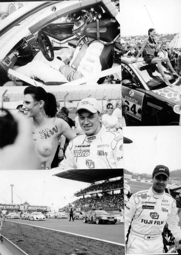 Vor dem Start ist immer etwas los. Tausende von Menschen umringen die Rennfahrzeuge. Während sich H.J. Stuck angeschnallt in seinem BMW M3 auf den Start konzentriert, präsentiert sich Robert Lechner mit einer