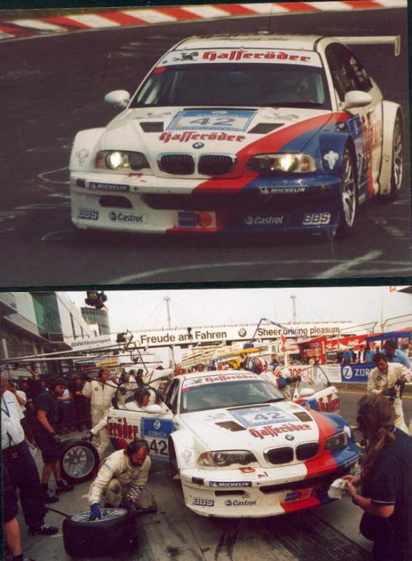 Die Start-Nr. 42, hier gefahren von H.J. Stuck, hatte in der ersten Runde Pech. Man hatte Trockeneis in die Kühlöffnungen deponiert, um das Fahrzeug in der langsamen Einführungsrunde zu kühlen. Das Eis kühlte jedoch auch die Leitungen zum Getriebe und ließ das Öl so dickflüssig werden, dass dies nicht mehr das Getriebe ausreichend versorgen konnte. Beide BMW M3-Fahrzeuge fielen in der Startrunde aus. Sie wurden mit einem neuen Getriebe versehen, fuhren bis zum 5. Platz wieder nach vorne, um dann nachts aufgrund eines Unfalls letztendlich auszufallen. |