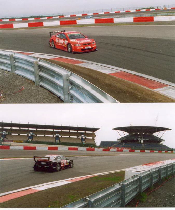 fahren die Rennfahrzeuge wieder zurück auf die „alte“ Strecke. Mit 150 km/h rasen sie an mir vorbei.