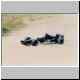 mehrfache Piourette, um auf der rechten Seite hinter der Linkskurve im Castrol S ebenfalls im Kiesbett zu landen. Besonders fiel uns auf, dass im Bereich der Mercedes-Tribüne zwar die Imbiss-Stuben mit weiß angezogenem