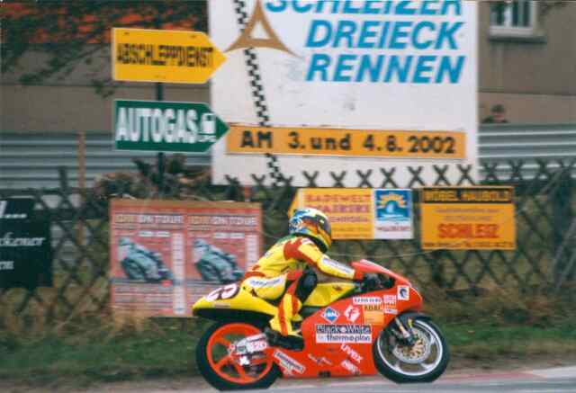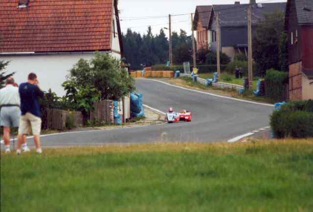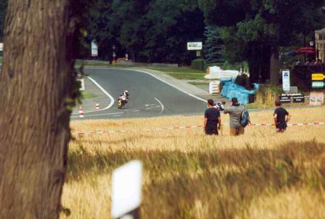 Ende des Rennens der 125 m³-Klasse. Hier an der Stadtkurve in Schleiz. Auch hier ist der ländliche Charakter