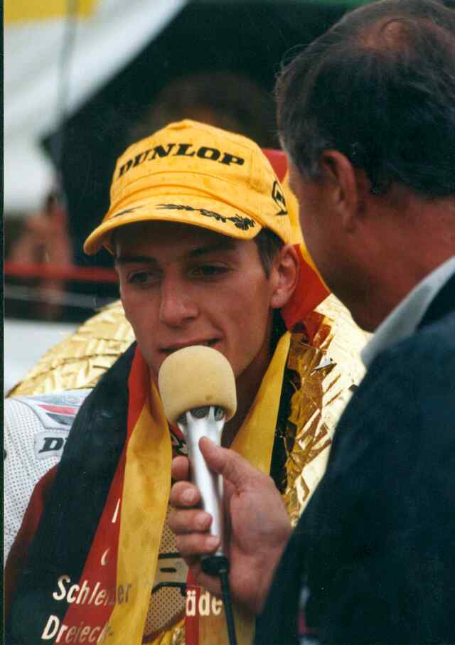 Interview des Siegers Christian Gemmel. Er gewann die 250 m³-Klasse nach einem riskanten Überholmanöver in der