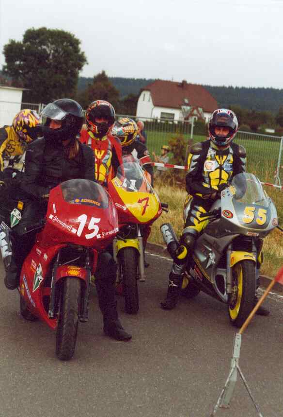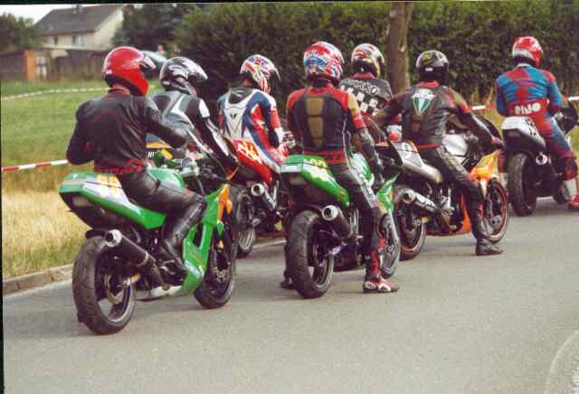 Die Fahrer des MZ-Cups warten darauf, auf die Rennstrecke fahren zu dürfen. Der sog. Vorstart fand südlich von