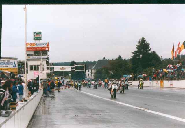 Start der 250 m³-Klasse. Vorne links fährt der spätere Sieger Christian Gemmel los. Max Neukirchner, der