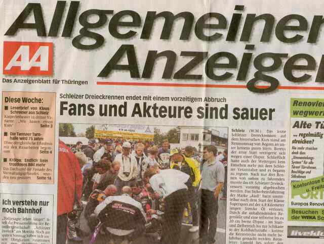 Der Allgemeine Anzeiger, Anzeigenblatt für Thüringen, berichtete am Montag, dass Fans und Akteure sauer waren, weil es das