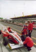 Box vorbeifahren. Frisch zum Einsatz kommende Rennfahrer warten konzentriert auf ihren Einsatz. Ich beobachtete den Stopp beim Zakspeed-Team. Aufgrund des hohen Benzinverbrauchs dauerte das Auftanken