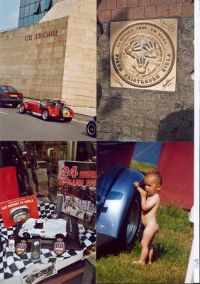 Nachmittag treffen sich die schönsten Autos im Stadtzentrum von Le Mans. Eingelassen in die Pflastersteine eine „Memory-Platte“ mit den Siegern von 2001: Pierro, Kristensen und Biela. Alle Geschäfte haben ihre