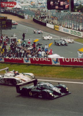 Nach 24 Stunden überquert der Bentley mit Tom Kristensen die Ziellinie – gefolgt von zwei überrundeten Audis (dritter und vierter Platz).