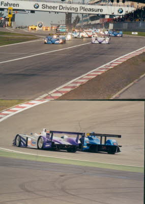 Bild Nr. 3 (Start)Nach dem Start ging’s bei einsetzendem Regen in Richtung Haug-Haken. Der Trainingsschnellste Zytek lag in Führung, wurde aber schon eingangs der Mercedes-Arena von Pierre Kaffer (Audi R8), dem späteren Sieger, überholt.
