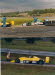 Tribüne sitzen ein paar Menschen – davor stehen gelbe Rennwagen mit der Aufschrift www.rajamakiracing.com.