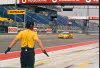 können sich, getrennt durch einen weißen Strich, an die Geschwindigkeit der etwas schnelleren auf der Rennstrecke fahrenden Rennwagen anpassen und sich problemlos einfädeln. Im Infield folgt dann