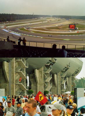 Außerdem wurde der Hockenheim-Ring verkürzt. Von der Mercedes-Tribüne hat man einen hervorragenden Blick auf die „Parabolika“ mit der daran anschließenden Haarnadelkurve.