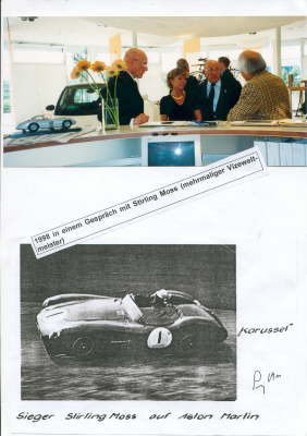 Übrigens werde ich auch über Kontakte zu Rennfahrer-Stars berichten, z.B. über eine Eisenbahnfahrt mit H.J.Stuck, den ich zufällig auf der Fahrt nach Hannover traf, oder ein Treffen mit Stirling Moss vor 2 Jahren in Köln-Godorf bei der Einweihung des dortigen smart-Zentrums meines Studienkollegen Dieter Klauke.