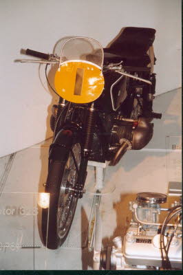 mit einem ausländischen Motorrad gewann. Nach dem Zweiten Weltkrieg ging Schorsch Meier mit seiner BMW wieder an den Start. Das ausgestellte Motorrad zeigte die Modifikationen der Saison