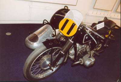 ehemaligen Heeresmaschine und das Fahrgestell einer BMW R 51. Auf solchen Gespannen konnten Kraus/ Huser, Müller/Wenshofer und Klankermeier/Wolz wieder Rennen für BMW gewinnen.
